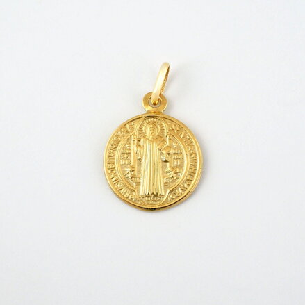 Na jednej strane je sv. Benedikt držiaci v pravej ruke kríž a v ľavej Regulu. Po pravej strane je rozbitý pohár s vychádzajúcim hadom, po ľavej havran odnášajúci otrávený chlieb. Tieto obrazy sa vzťahujú na príbehy z Dialógov sv. Gregora Veľkého, pri ktorých bol sv. Benedikt zachránený pred nepriateľskými úkladmi mocou znaku sv. Kríža. Pri svätcovi je nápis: „Crux sancti patris Benedicti" (Kríž svätého otca Benedikta). Na obrube je nápis: „Eius in obitu nostro prasentia muniamur" (Nech nás jeho prítomnosť chráni v hodine smrti).